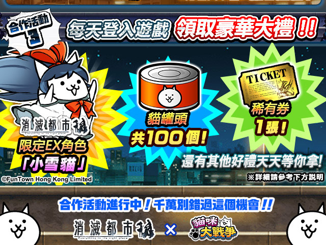 『消滅都市』與中文版『貓咪大戰爭』的合作活動開始啦!